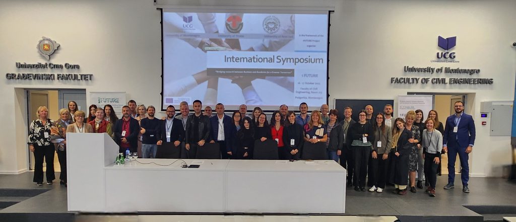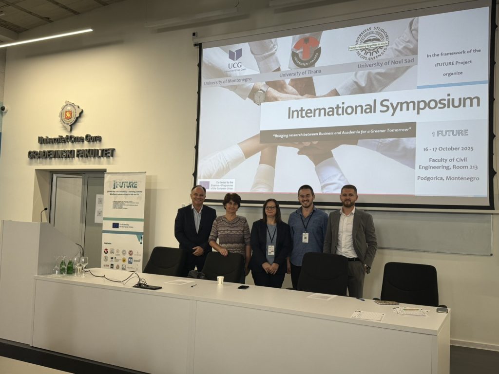 U sklopu Erasmus+ projekta 1FUTURE, koji se fokusira na jačanje kapaciteta visokog obrazovanja u regiji Zapadnog Balkana za implementaciju ciljeva Zelenog dogovora (Green Deal), od 16. do 17. oktobra 2025. godine, u Podgorici, Crna Gora, održan je međunarodni simpozijum pod nazivom: „Bridging Research Between Business and Academia for a Greener Tomorrow“ (Premošćavanje istraživanja između biznisa i akademske zajednice za zeleniju budućnost).